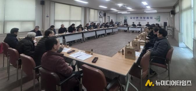 이날 회의에는 김완섭 갈산면장을 비롯해 각 마을 이장 등 40여 명이 참석했으며 ▲희망 2026 나눔캠페인 및 적십자 성금 안내 ▲산불 및 주택 화재예방 협조 요청 ▲자동차세 연납 신청 및 등록면허세 납부 홍보 등이 이뤄졌다.