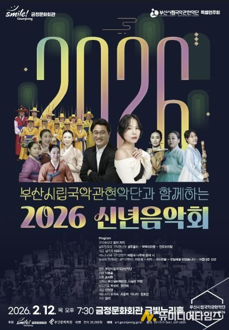 금정문화회관에서는 2월 12일 오후 7시 30분, 금빛누리홀에서 부산시립국악관현악단과 함께하는 '2026 신년음악회’가 개최된다.