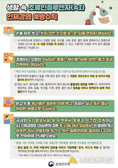 철원군보건소는 AI 인체감염증 예방을 위해 다음과 같은 수칙을 지켜줄 것을 강조했다.