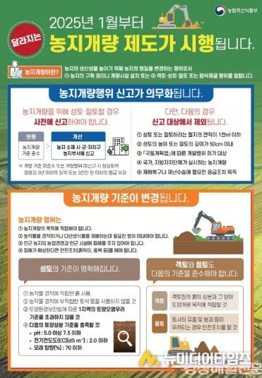 군 관계자는 “토양 기준 충족 여부를 확인할 수 있는 서류는 관련 법령에서 정한 공인 분석기관에서 발급받을 수 있다”며 “농지개량 시 사전 신고를 꼭 지켜주시길 바란다”고 말했다.