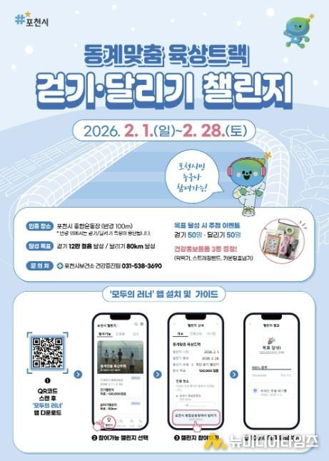 포천시는 겨울철 시민들의 건강한 생활습관 형성을 지원하기 위해 ‘동계맞춤 육상트랙 걷기·달리기 챌린지’를 운영한다.