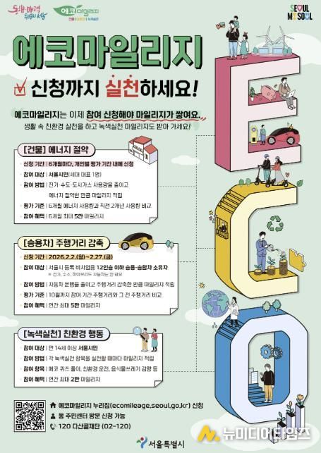 아울러 올해부터 에코마일리지 ‘참여 신청제’가 도입됐다. 기존에는 전기·수도·가스 고객 번호를 입력해 회원가입하면 별도의 신청 없이 자동 평가됐지만, 올해는 참여자가 에코마일리지 누리집에서 회원가입 후 반기 1회 참여 신청을 하면 평가 후 절감률에 따라 1~5만 마일리지를 지급받을 수 있다.
