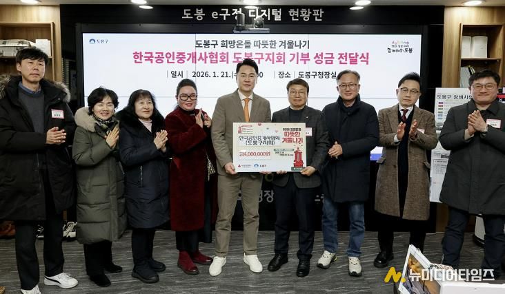 서울 도봉구는 지난 1월 21일 한국공인중개사협회 도봉구지회와 지역 내 공인중개사 단체들로부터 성금 400만 원을 전달받았다.