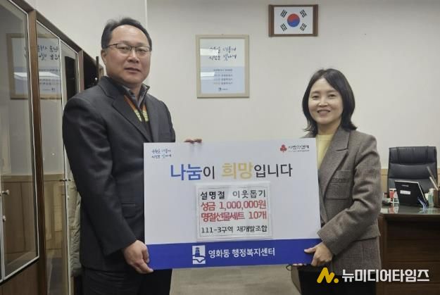 수원시 장안구 영화동 111-3구역 주택재개발정비사업조합이 지난 28일, 설 명절을 맞아 영화동 행정복지센터에 130만원 상당의 후원금품을 전달했다.