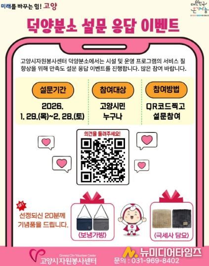 조사는 2월 28일까지 온라인 및 QR코드를 통해 참여할 수 있으며, 참여자 중 추첨을 통해 소정의 상품(센터 기념품)을 증정할 계획이다.