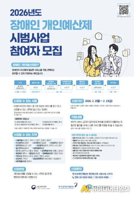 시흥시는 2월 2일부터 13일까지 ‘2026년 장애인 개인 예산제 시범사업’ 참여자를 모집한다.