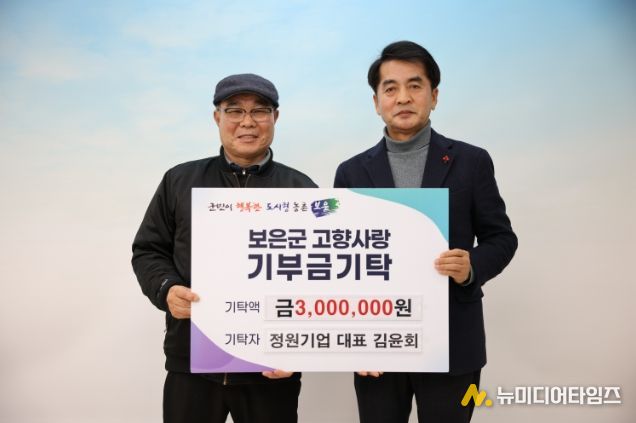 경기도 김포시에서 맨홀 안전 사다리 생산업체 ‘정원기업’을 운영 중인 김윤회 대표는 2일 보은군청을 방문해 고향사랑기부금 300만 원을 기탁했다.