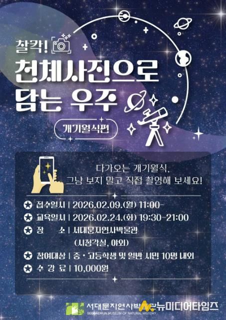 서대문구가 서대문자연사박물관에서 체험형 강좌인 ‘찰칵! 천체사진으로 담는 우주 – 개기월식 편’을 마련했다고 3일 밝혔다.