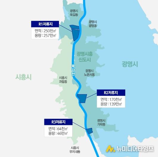 다만 R1 저류지 단독으로는 30년 빈도의 홍수 대응에 그쳐, 기후위기 시대의 반복되는 극한 호우에 대비하기에는 한계가 있다는 평가다. 이에 따라 한강유역환경청은 광명시 노온사동 일원에 16만 9천725㎡ 규모의 R2 저류지와 광명시 가학동 일원에 6만 3천803㎡ 규모의 R3 저류지 조성을 추가로 계획하고 있다.