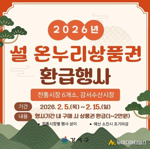 서울 강서구는 설 명절을 맞아 전통시장에서 ‘온누리상품권 환급행사’와 전통 놀이 체험 등 다양한 행사를 개최한다.