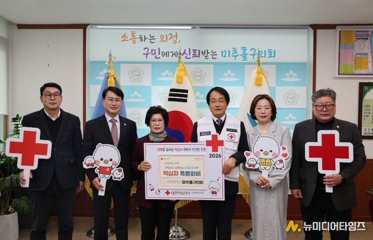 인천광역시 미추홀구의회는 2월 4일 의회 의장실에서 전경애 의장과 장규철 부의장을 비롯한 상임위원장들과 조의영 대한적십자사 인천지사 회장 및 조혜정 적십자봉사회 미추홀지구협의회 회장과 관계 임원들이 참석한 가운데 2026년도 적십자 특별회비 전달식을 개최했다.