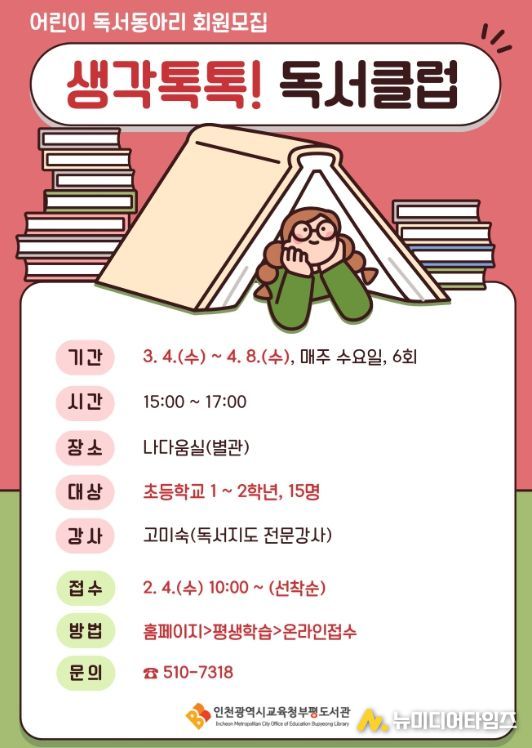 인천광역시교육청부평도서관은 3월 4일부터 4월 8일까지 2026년 상반기 어린이 독서동아리 ‘생각 톡톡! 독서클럽’을 운영한다.