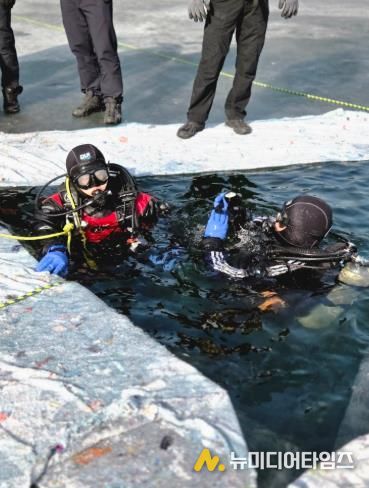 훈련은 동계 수난구조장비 사용법 교육을 비롯해 얼음 밑 잠수 구조, 요구조자 탐색 및 인양 훈련, 수중통신장비 활용 숙달, 수상·빙판 구조기법 훈련 등 실제 상황을 가정한 실전 중심으로 진행될 예정이다.