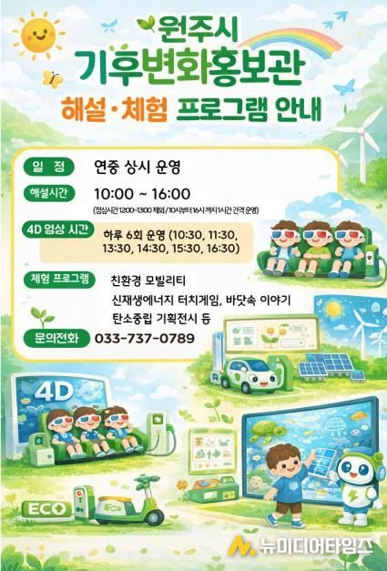 맹순재 원주시 기후대응과장은 “기후변화홍보관 프로그램이 기후 위기의 심각성을 인식하고, 탄소중립을 일상생활 속에서 실천하는 계기가 되길 바란다”라고 말했다.