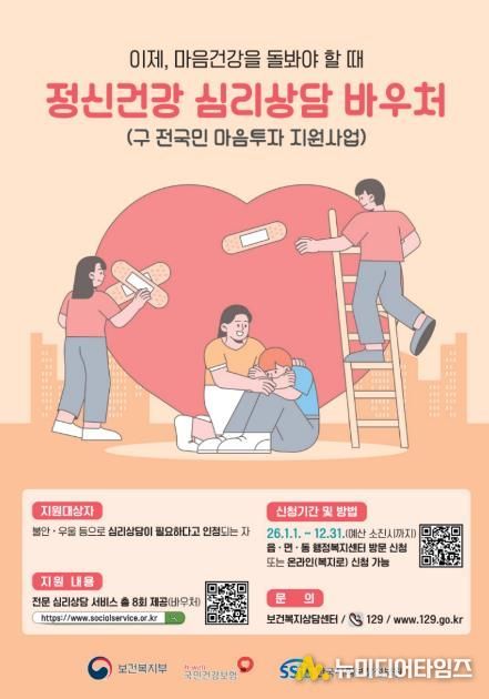 원주시는 우울·불안 등 정서적 어려움이 있는 시민들이 심리 상담 서비스를 받을 수 있도록 ‘2026년 정신건강 심리상담 바우처사업’ 이용자를 모집한다.