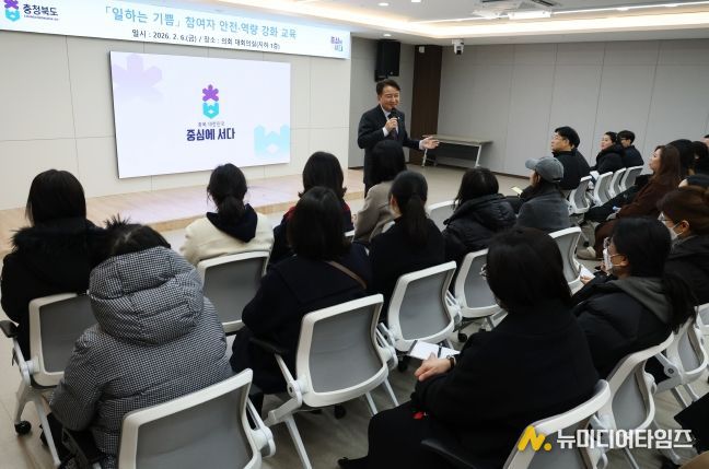 충북도는 6일 도내 ‘일하는 기쁨’ 공동작업장 참여자 80여 명을 대상으로 자산관리 특강, 양성평등교육 및 도지사와의 대화를 포함한 참여자 역량강화 및 소통 행사를 개최했다.