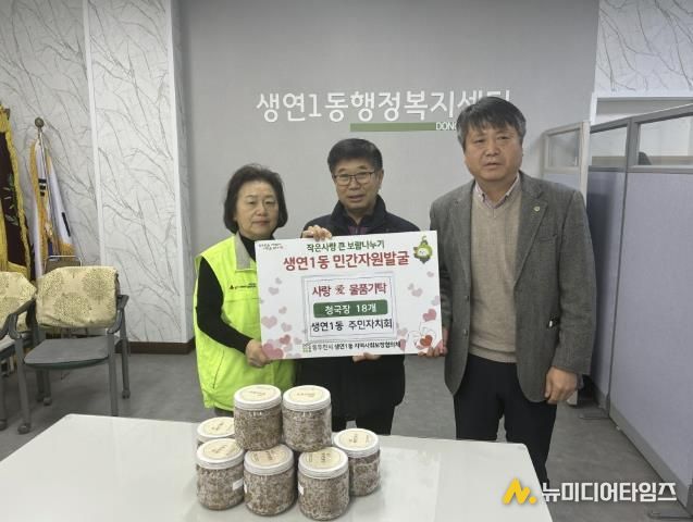 동두천시 생연1동 행정복지센터는 지난 5일, 생연1동 주민자치회가 직접 만든 ‘사랑 愛 청국장’을 관내 경로당 어르신들에게 전달했다고 밝혔다.