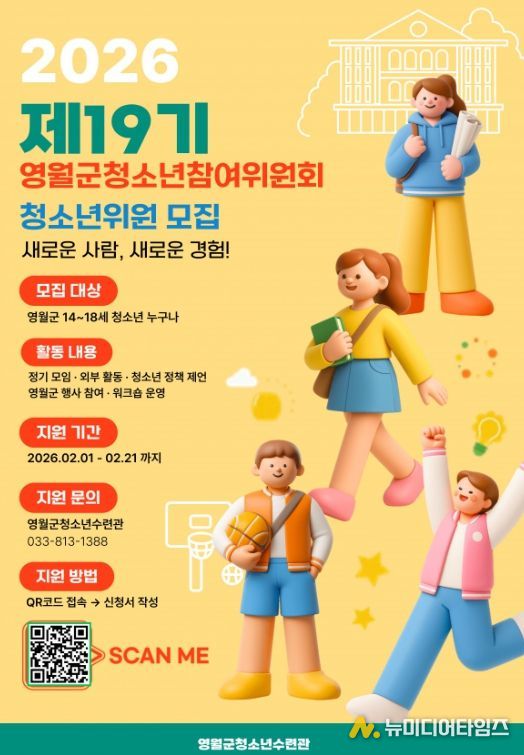 영월군청소년수련관은 관내 중~고등학교 청소년을 대상으로 오는 21일(토)까지 영월군청소년참여기구 신규, 연임 위원을 추가 모집한다.