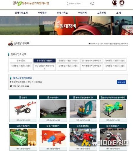 농기계 임대사업과 온라인 예약 관련 문의는 청주시농업기술센터 농업기계팀으로 하면 된다.