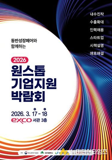 대구광역시는 지역기업의 지속 가능한 성장을 지원하기 위해 오는 3월 17일부터 18일까지 EXCO 서관 3층에서 열리는 ‘동반성장페어와 함께하는 2026 원스톱 기업지원박람회’ 참가기업을 모집한다.