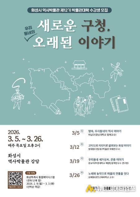 강의는 화성시 역사박물관 1층 강당에서 진행되며, 지역 주민을 비롯해 역사와 문화에 관심 있는 성인이면 누구나 참여할 수 있다. 수강 정원은 60명으로, 2월 9일부터 화성특례시 통합예약시스템을 통해 선착순으로 접수한다.