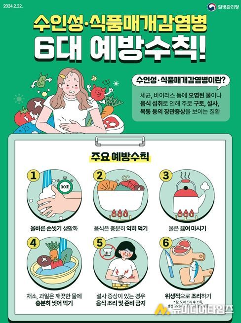 인천시는 명절 기간 가족 간 감염병 예방을 위해 ▲올바른 손 씻기 생활화 ▲음식 충분히 익혀 먹기 ▲물 끓여 마시기 ▲설사 증상 시 조리 금지 등 6대 예방수칙 준수를 당부했다.