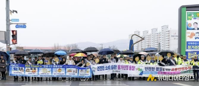영암군민과 귀성객의 안전한 설을 위한 이날 행사에서 참여자들은, ▲보행자 안전수칙 준수 ▲음주운전 근절 ▲제한속도 준수 및 도로 결빙 시 감속 운전 ▲전 좌석 안전띠 착용 생활화 등을 홍보했다.