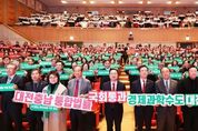 대전시는 12일 시청 대강당에서 대전광역시의회, 대전충남 행정통합 민관협의체(이하 민관협)와 공동으로 “대전충남 행정통합 설명회 및 시민 한마음 촉구대회”를 개최하고, 대전충남 행정통합 특별법안의 조속한 국회 심의․의결을 촉구했다. 이날 행사는 최근 대통령이 행정통합의 필요성을 공식 언급하면서 통합 논의가 새로운 전기를 맞은 가운데 마련됐으며, 약 600명의 시민이 참석해 추진상황을 공유하고 통합 의지를 결집했다. 이창기 민관협 공동위원장은 지난 10월 2일 특별법안 발의 이후 경과를 소개하며, 통합으로 기대되는 효과를 설명했다. 이 공동위원장은 통합 시 인구 360만 규모의 초광역 혁신 클러스터 형성, 광역교통․생활권 확장 등 실질적인 변화를 강조하며 “행정통합은 수도권 일극체제에 대응할 충청권의 경쟁력 확보 전략”이라고 밝혔다. 설명회 후에는 통합을 촉구하는 퍼포먼스가 진행됐다. 이장우 대전시장, 조원휘 대전시의회의장, 이창기 민관협 공동위원장, 남재동 대전사랑시민협의회장이 관객석에서 행정통합을 촉구하는 구호를 선창하고 시민이 후창하는 카드섹션을 펼쳤으며, 이어 무대에서는 통합 결의를 상징하는