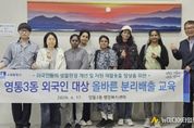 수원시 영통구 영통3동은 지난 17일, 외국인 주민의 생활환경 개선과 자원 재활용률 향상을 위해 관내 외국인을 대상으로 올바른 분리배출 교육을 실시했다. 이번 교육은 생활쓰레기 배출 방식에 익숙하지 않은 외국인 주민들의 불편을 해소하고 올바른 분리배출 문화 정착을 돕기 위해 마련됐다. 교육에서는 다국어 분리배출 안내문을 활용해 투명 페트병 분리배출 방법과 유용 생활폐자원 교환 제도 등을 안내했다. 김인태 영통3동장은 "이번 교육을 통해 외국인 주민들의 환경 의식을 높이고 생활쓰레기 감량과 재활용 활성화에 실질적인 도움이 될 것으로 기대한다”며 “앞으로도 외국인 주민을 포함한 모든 주민이 쉽게 이해하고 실천할 수 있는 환경교육을 지속적으로 추진하겠다”고 밝혔다. 한편, 영통3동 행정복지센터는 관내 수원출입국외국인청을 방문해 ‘찾아가는 외국인 분리배출 교육’을 실시할 계획이다.