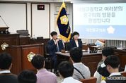 대전 중구의회는 17일 대전대성고등학교 학생들을 대상으로 의회 견학프로그램을 진행했다. 이번 견학은 학생들이 민주주의와 주민참여의 현장을 직접 체험하고, 대의제의 원리와 기능에 대해 알아보기 위해 마련됐다. 학생들은 상임위원회, 본회의장 등 주요 의회 시설을 둘러보고, 의회와 구의원의 역할, 회의진행 과정에 대한 설명을 청취했으며, 직접 의장석에 안자 의사봉을 두드려보는 체험을 통해 의정 활동에 대한 이해를 높였다. 또한 오은규 의장, 김옥향 부의장과의 질의응답 시간을 통해 학생들은 평소 궁금해했던 조례나 의정활동에 대한 답변을 들으며 생생한 배움의 시간을 가졌다. 오은규 의장은“오늘 견학을 통해 학생들이 의회의 역할과 민주주의의 가치를 배우는 소중한 계기가 됐길 바란다”며, “앞으로도 미래 세대가 올바른 민주의식을 가질 수 있도록 노력하겠다”고 말했다.