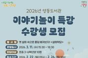 양평군은 새 학기를 맞아 양동도서관에서 초등학생을 대상으로 운영하는 ‘이야기 놀이 특강’의 수강생을 오는 22일부터 26일까지 모집한다고 밝혔다. 이번 특강은 옛 설화 속 주인공이 되어 또래와 협력해 이야기를 만들어 보는 스토리텔링 프로그램이다. 시나리오 속에서 나만의 캐릭터를 만들고 싶은 초등학교 3~6학년 학생이라면 누구나 신청할 수 있다. 강좌는 3월 11일 오후 3시 30분부터 약 3시간 동안 참여형 프로그램으로 진행되며, 장소는 양동도서관 3층 강의실이다. 전진선 양평군수는 “앞으로 양동도서관이 어린이들에게 다양한 독서문화 프로그램을 제공하고, 이번 특강이 초등학생들의 문해력 향상에 도움이 되기를 바란다”고 전했다.