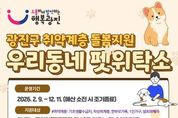 광진구가 갑작스러운 상황으로 인해 반려동물 임시보호가 필요한 취약계층을 위해 ‘우리동네 펫위탁소’를 운영한다. ‘우리동네 펫위탁소’는 사회적 약자가 질병·입원, 생계곤란, 주거 이전 등으로 반려동물을 안전하게 맡겨야 할 때 주민을 대신해 일정기간 돌봄 서비스를 받을수 있도록 지원하는 사업이다. 반려견 또는 반려묘 1마리당 연간 최대 10일까지 이용할 수 있으며, 반려동물의 종류와 체중에 따라 1일 최대 5만 원까지 위탁비를 지원한다. 장기입원 등 구에서 인정하는 특별한 사유가 있을 경우 최대 50일까지 연장 지원한다. 대상은 광진구에 주민 등록이 되어있는 기초생활수급자, 차상위계층, 한부모 가족과 범죄피해자(보호시설 입소자)와 1인가구다. 지원기간은 1마리당 연간 최대 10일까지이며 1인가구는 반기별 최대 5일까지 지원받을 수 있다. 특히 올해부터는 반려견뿐 아니라 반려묘까지 동물 등록을 완료한 경우에만 지원이 가능하도록 기준을 강화해서 책임있는 반려문화 정착을 유도한다. 신청을 원하는 주민은 우리동네 펫위탁소를 방문해 신청하면 된다. 주민등록등본 등 취약계층 증빙서류와 신분증 사본,