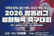 충북 영동군 생활체육 축구의 중심 ‘영동리그’가 2026년, 한층 젊고 역동적인 변화와 함께 새롭게 출발한다. 영동군축구협회(회장 김영민)는 오는 8일 저녁 7시, 영동군민운동장에서 '제31회 2026 영동리그 생활체육축구대회' 개막경기를 시작으로 8월까지 약 4개월간의 리그 일정에 돌입한다고 밝혔다. 이번 리그는 매주 수요일 개최되며 ▲영친회 ▲성우회 ▲하나회 ▲태산FC ▲움직여 ▲영동군청FC ▲우체국FC 등 총 7개 팀이 참가해 풀리그 방식으로 치열한 경쟁을 펼칠 예정이다. 특히 이번 리그는 지난 3월 일라이트 골프앤리조트의 전폭적인 후원으로 성황리에 마친 ‘전국 유소년 축구 스토브리그’의 열기를 이어받아 더욱 기대를 모으고 있다. 유소년 대회 유치를 통해 지역 경제 활성화에 기여했던 성공 사례를 바탕으로, 이번 영동리그 역시 지역 기업과 상생하는 스포츠 마케팅의 핵심 모델로 추진된다. ‘골 1만 원의 가치’… 축구로 실현하는 따뜻한 나눔 올해 리그의 가장 큰 변화는 ‘골 1개당 1만 원 적립 기부제’의 도입이다. 경기 중 기록되는 모든 득점마다 협회 차원