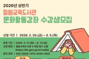 철원교육도서관 2026년 초등 독서논술동아리를 3월 14일부터 11월 14일까지 운영하며, 이를 위해 2월 19일부터 동아리 회원을 모집한다. 모집 동아리는 △돋을별(초등학교 1~3학년 대상) △은가람(초등학교 4~6학년 대상)으로 총 2개 동아리이다. 초등 독서논술동아리 회원 모집은 2월 19일부터 철원교육도서관 누리집을 통해 가능하다. 동아리별로 대상이 다르므로 유의하여 신청하여야 한다. 정원 미달이 발생할 경우 동아리 회원은 상시 모집한다. 김민서 관장은 "독서동아리 활동을 통해 어린이들이 책 읽는 습관을 익히고, 토의 활동을 통해 의사소통 능력과 사고력을 키울 수 있기를 바란다"라고 말했다. 기타 자세한 사항은 철원교육도서관 누리집 공지사항 또는 동아리 담당자 에게 문의하면 된다.