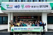 강원특별자치도양구교육지원청은 6일, 제81회 식목일을 맞아 ‘청렴 식목행사’를 실시했다. 이번 행사는 직원 60여 명이 참여해 청사 주변 환경을 정비하고 자연과 함께하는 활동을 통해 청렴 의식을 높이며 조직 내 청렴 문화를 확산하고자 마련됐다. 직원들은 꽃잔디와 나무를 식재해 청사 주변 환경을 아름답게 가꾸는 한편, 청사 및 관사 일대의 쓰레기와 낙엽을 수거하는 등 환경 정화 활동을 병행했다. 특히, 이번에 식재한 나무에는 직원들이 함께 정한 청렴의 가치를 담은 이름을 부여해 청렴의 의미를 되새기고 일상 속 실천 의지를 다지는 계기를 마련했다. 김애자 교육장은 “이번 청렴 식목행사를 통해 직원들이 청렴의 가치를 자연스럽게 체득하는 계기가 됐다”라며, “앞으로도 쾌적한 근무환경 조성과 함께 건강한 조직 문화 조성을 위해 지속적으로 노력하겠다”라고 말했다.