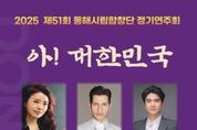 동해시는 오는 11월 1일 오후 5시, 동해문화예술회관 대공연장에서 ‘제51회 동해시립합창단 정기연주회’를 개최한다. 전은정 지휘자 등 45명의 단원으로 구성된 동해시립합창단은 창단 37주년을 맞아 ‘아! 대한민국’을 주제로 국민적인 공감대와 희망을 노래하는 감동의 무대를 준비하고 있다. 이번 정기연주회는 우효원 작곡의 주제곡 ‘아! 대한민국’을 비롯해 다양한 프로그램으로 구성된다. 특히 섬세하면서도 파워풀한 음색의 테너 이승민과, 역동적인 무대를 선사하는 모듬북 연주자 임원식이 특별 출연해 공연의 풍성함을 더한다. 또한 ‘남촌’, ‘동무생각’, ‘별을 캐는 밤’ 등 한국인이 사랑하는 서정적인 가곡을 통해 깊은 향수를 자극하고, 비제의 오페라 카르멘 중 ‘집시의 노래’, 오펜바흐의 호프만의 이야기 중 ‘호프만의 뱃노래’ 등 합창 명곡을 비롯해 ‘이별의 노래’ 등 감성적인 곡들로 시민들에게 극적인 감동을 선사할 예정이다. 이번 공연의 사회는 이탈리아 출신 방송인 알베르토 몬디가 맡는다. JTBC 비정상회담, MBC every1 어서와 한국은 처음이지 등에 출연하며 대중에게 친