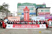 파주시는 지난 10일 금촌역 광장에서 사랑의 온도탑 100도시(℃)를 향한 힘찬 외침과 함께 ‘사랑의 온도탑’제막식을 개최했다고 밝혔다. 이번 행사는 ‘희망2026 나눔캠페인’(2025. 12. 1.~2026. 1. 31.)의 시작을 알리고 시민들의 기부 참여를 독려하기 위해 마련됐다. ‘희망2026 나눔캠페인’은 ‘행복을 더하는 기부, 기부로 바꾸는 파주’라는 표어 아래 이달부터 내년 1월 말까지 62일간 진행된다. 올해 사랑의 온도탑 모금 목표액은 11억 원으로, 모금 목표액의 1%(1,100만 원)가 모금될 때마다 온도탑도 1도시(℃)씩 올라간다. 이날 제막식에서는 ㈜비.엘.아이 서경아 대표의 파주시 ‘제26호 아너소사이어티’가입식도 함께 진행됐다. 또한, 아너소사이어티 회원들과 파주상공회의소, 사회복지기관, 읍면동 지역사회보장협의체 등 여러 단체에서 참여해 나눔 문화 확산에 동참하는 의지를 나타냈다. 김경일 파주시장은 “사랑의 온도탑은 ‘우리 곁에는 언제나 사랑과 나눔을 실천하는 이웃이 있다’라는 내용을 전하는 상징으로, 온도가 올라갈수록 마음의 온기가 느껴지고 파주시를 더 따뜻한 곳으로 만