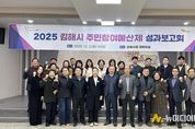 김해시는 지난 2일 시청 대회의실에서 ‘2025년 주민참여예산제 성과보고회’를 개최했다고 밝혔다. 성과보고회는 올 한해 주민참여예산제 운영 전반을 돌아보고 향후 내실 있는 운영 기반을 마련하기 위해 ▲2025년 제도 운영 성과 보고 ▲모니터링 결과 보고 ▲2026년 운영 일정(안) 안내 등의 순서로 진행됐다. 2025년 주민참여예산제 주요 운영 성과는 ▲역량강화 교육 실시 및 홍보 동영상 제작 ▲주민참여예산 사업 심의 ▲찾아가는 주민참여예산제 컨설팅 실시 ▲자치법규 개정 등이다. 보고회에는 제4, 5기 위원 50여명이 참석했다. 올해 임기가 종료되는 4기 위원뿐만 아니라 내년 1월부터 임기가 시작되는 5기 위원들도 초청해 위원회의 지속가능한 운영을 도모했다. 시 관계자는 “한해를 돌아보고 내년을 준비하는 뜻깊은 시간이 됐다”라며 “4기 위원회 임기는 종료되지만, 내년에 새로 시작하는 5기 위원회와 함께 더욱 발전하는 김해시 주민참여예산제가 되도록 노력하겠다.”라고 밝혔다.