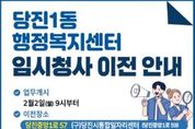 당진시는 의료인프라 구축을 위한 당진1동 행정복지센터 매각 계획에 따라, 당진1동 행정복지센터를 인근 임시청사로 이전하고 오는 2월 2일부터 업무를 개시한다고 26일 밝혔다. 새롭게 이전하는 임시청사는 당진시 당진중앙1로 57에 위치한 (구)당진시통합일자리센터로, 지하 1층~지상 3층 규모의 건물이며 운영 기간은 오는 2월 2일부터 신청사 건축이 완료될 때까지이다. 시는 현수막 게시, 관내 유관 단체·기관을 통한 안내문 배부 및 사회관계망서비스(SNS) 등을 이용해 임시청사 이전 홍보에 나서 주민들의 혼란과 불편을 최소화할 방침이다. 한편, 시는 추후 신청사에 대한 주민 의견 수렴을 거쳐 부지 선정 후 조속히 건축을 추진할 방침이다.