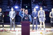 이재준 수원특례시장이 4일 수원KT소닉붐아레나에서 열린 ‘2025-2026 프로농구 KBL 홈 개막전’에서 개막선언을 했다. 수원KT소닉붐과 부산KCC의 홈 개막전에서 축사를 한 이재준 시장은 “시민과 함께 수원KT 소닉붐의 우승을 기원하며 시민들과 함께 응원하겠다”고 말했다. 이재준 시장은 개막선언을 했다. 수원KT소닉붐은 개막전에서 85대 67로 승리했다.