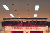(사)대한노인회 하남시지회는 9일 노인복지관 2층 대강당에서 이현재 하남시장을 비롯한 각 경로당 회원과 수강생 등 400여명이 참석한 가운데 제36기 노인대학 개강식 행사를 가졌다. 이날 개강식은 공식행사와 함께 노인대학에 대한 교육안내 등 오리엔테이션으로 다채롭게 진행됐다. 노인대학 강좌는 ▲건강프로그램으로 헬스, 요가, 건강체조, 실버댄스, 실버합창, 노래교실 ▲전통프로그램으로 고고장구, 한국무용, 난타반 ▲교양프로그램으로 한글교실, 영어교실, 생활영어, 기타교실, 수채화교실, 컴퓨터교실(2개반), 캘리그래피, 서예 등 18개 강좌로 12월까지 진행된다. 하남시 노인대학은 1989년 제1기로 노인대학을 개설하여 (사)대한노인회 하남시지회에서 주관하여 운영한다 이현재 시장은 이날 축사를 통해 "노인대학 개강식을 축하드리며 배움을 향한 끝없는 도전에 깊은 존경을 표한다"며 "노인대학을 통해 행복한 노후생활에 보탬이 되길 바란다"고 말했다.