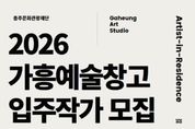 (재)충주문화관광재단이 충주공예전시관 레지던시‘가흥예술창고’4기 입주작가를 오는 2월 2일까지 공개 모집한다고 밝혔다. 모집 대상은 시각예술 전 분야로 본 레지던시 입주경력이 없는 작가라면 누구나 지원할 수 있다. 모집 인원은 6명 내외로, 입주 기간은 3월부터 11월까지 9개월간이다. 입주작가에게는 개별 창작공간, 전시, 온·오프라인 홍보 등을 지원하며, 월별 창작활동을 원활히 수행한 작가에게는 소정의 창작지원금을 지원한다. 접수는 1월 16일부터 오는 2월 2일 오후 5시까지이며, 1차·2차 서류 심사와 3차 인터뷰 심사를 거쳐 2월 중 최종 합격자를 발표할 예정이다. 재단 관계자는 “작가들이 안정적인 창작환경에서 예술적 역량을 마음껏 펼치기를 기대한다”며, “새로운 시각과 실험적인 시도를 두려워 하지 않는 역량있는 작가들의 많은 관심과 참여를 바란다”고 전했다. 공모 관련 자세한 내용은 충주문화관광재단 홈페이지에서 확인할 수 있으며, 관련 문의는 문화사업팀으로 하면 된다.