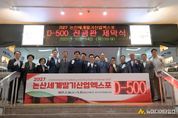 논산시가 세계 딸기산업의 중심 도시로 도약하는 날을 향한 힘찬 카운트다운을 시작했다. 논산시는 14일 시청 중앙현관에서 ‘2027 논산세계딸기산업엑스포 D-500 기념 전광판 제막식’을 열었다. 이번 제막식은 엑스포 개막 500일을 앞두고 엑스포의 본격적인 준비 체제로 돌입했음을 선포하며 시민과 함께 성공 개최 의지를 다지기 위해 마련됐다. 행사에는 백성현 논산시장, 조용훈 논산시의회 의장, 이존관 조직위원회 사무총장, 관내 농업인단체 대표 등 10여 명이 참석했다. D-500 전광판은 2027년 2월 26일 엑스포 개막일까지 남은 일수를 실시간으로 표시하며, 국제행사 분위기를 시민과 공유하는 상징물로 자리매김할 예정이다. 한편, 제막식에 앞서 ㈜이스트소프트가 개발한 ‘엑스포 인공지능 키오스크’ 시연이 진행돼 눈길을 끌었다. 키오스크는 대화형 인공지능을 통해 32개국 언어로 실시간 응답하며, 시청 본관 1층에 상시 배치돼 엑스포와 주요 행사 정보, 민원 안내를 제공할 예정이다. 백성현 논산시장은 “전광판의 숫자가 하나씩 줄어드는 만큼, 엑스포를 향한 시민의 기대와 열정도 함께 커질 것”