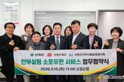 산청군은 지난 10일 부군수실에서 산청우체국, 산청군지역사회보장협의체와 ‘안부살핌 소포우편 서비스’ 추진을 위한 업무 협약을 체결했다고 밝혔다. 이번 사업은 행정안전부 공모사업인 ‘2026년 읍면동 스마트 복지‧안전서비스 개선 모델 개발 지원사업’에 선정되어 국비 1천만 원, 우체국공익재단 7백만 원 등 총 1700만 원의 예산을 확보해 추진한다. 협약에 따라 산청군은 대상 가구 선정과 안부 물품 제공 및 복지 지원을 수행하며, 산청우체국은 집배원 네트워크를 활용해 물품 배달과 대상자의 안부 확인 결과를 회신한다. 산청군지역사회보장협의체는 사업 추진에 필요한 물품 관련 비용을 지원하며 힘을 보탤 계획이다. 특히, 집배원이 방문 시 체크리스트를 통해 위기 상황을 점검해 군에 보고하면, 읍면 복지 담당 공무원이 즉시 맞춤형 복지 서비스를 연계하게 된다. 군은 지난 2025년에도 사업을 통해 110명에게 총 1320회의 안부 확인 서비스를 제공해 높은 만족도와 고독사 예방 효과를 거두었다. 산청군 관계자는 “우체국, 지역사회보장협의체와의 유기적인 협력을 통해 위기가구를 조기에 발굴하겠다”며“