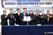 화성특례시는 16일 시청 중앙회의실에서 마파지태양광협동조합과 ‘화성형 기본소득 에너지자립마을 조성을 위한 업무협약(MOU)’을 체결했다. 이날 협약식에는 정명근 화성특례시장을 비롯해 김진원 마파지태양광 협동조합장 등이 참석해, 주민주도형 재생에너지 기반 에너지자립마을 조성사업의 추진에 상호 협력하기로 했다. 이번 사업은 국유지를 활용해 주민이 사업비 전액을 부담해 100% 주민주도형 ‘에너지자립마을’을 조성하는 경기도 최초 사례로, 재생에너지 수익을 마을 복지와 기본소득으로 연계하는 ‘화성형 기본사회’ 정책의 첫 시범 모델이다. 마파지태양광협동조합은 석포6리 주민 25가구가 공동 운영하는 협동조합으로, 사업주체로서 장안면 석포리 823번지 제방 국유지에 415kW 규모의 태양광 발전설비를 설치한다. 사업비는 총 5억 2천만 원으로 전액을 주민이 자부담한다. 시는 협약에 따라 인허가, 관계기관 협의, 제도 검토 등 사업 추진에 필요한 행정적·제도적 지원을 담당하고, 에너지자립마을이 안정적으로 운영될 수 있도록 정책적 기반 마련에 협력한다. 또한 재생에너지 수익이 마을 복지와 기본소득으로