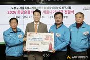 서울 도봉구는 지난 1월 21일 서울특별시자동차전문정비사업조합 도봉구지회(약칭: 카포스 도봉구지회)로부터 따뜻한 겨울나기 이웃돕기 성금 100만 원을 전달받았다. 오언석 도봉구청장은 “카포스 도봉구지회의 소중한 마음에 감사드린다. 전해주신 성금은 꼭 필요한 이웃들에게 잘 전달될 수 있도록 하겠다.”라고 말했다. 카포스 도봉구지회(지회장 이평관)는 매년 구에 따뜻한 겨울나기 성금을 기부해 오고 있다. 성금 기부 외에도 명절에 구민의 안전한 귀성길 운행을 위해 차량 점검을 무상으로 실시하고 있다.