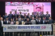 전라남도 나주시가 지역 대표 특산물 세지멜론의 전국적 경쟁력을 다시 한번 입증했다. 나주시(시장 윤병태)는 세지농협 멜론공선출하회가 농협중앙회 ‘2025 생산자조직 연도대상’에서 우수상을 받으며 공선 조직 기반의 고품질 생산 시스템과 지역 농가의 역량을 공식적으로 인정받았다고 5일 밝혔다. 세지농협(조합장 이은상)에 따르면 멜론공선출하회가 ‘2025년도 생산자조직 연도대상’ 평가에서 우수 생산자조직으로 선정됐다. ‘생산자조직 연도대상’은 농협경제지주가 전국 공선출하회를 대상으로 생산, 선별, 출하, 운영 등 전반의 활동과 품질관리 실적을 종합 평가해 우수 조직을 선정하는 제도다. 산지 조직 활성화와 농업 공동체 발전을 도모하는 대표적 평가로 꼽힌다. 세지농협 멜론공선출하회는 1996년 결성된 이후 현재 69명의 회원이 활동하고 있으며 나주 세지멜론은 약 66ha 재배면적에서 연간 3200톤이 생산된다. 연평균 기온 15도, 풍부한 일조량 등 나주시 특유의 자연조건은 멜론 재배에 최적화돼 있으며 특히 풍부한 과즙과 달콤한 향, 13브릭스 이상을 유지하는 균일한 고당도 품질은