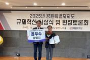 강원특별자치도는 12월 3일 오후 1시 30분 춘천 KT&G 상상마당에서 '2025년 규제혁신 시상식 및 현장토론회'를 개최했다고 밝혔다. 규제혁신 시상식에서는 규제개선 과제 발굴 및 개선 실적 등을 종합 평가하여 도 우수 부서와 규제혁신 추진성과(3개 분야·9개 평가지표) 평가결과 선정된 우수 시군에 대한 시상이 진행됐다. (도 우수 부서) △최우수: 산림관리과(시상금 200만 원) △우수: 체육과(시상금 100만 원) △장려: 건축과, 산림과학연구원 남부지원(시상금 각 50만 원) (우수 시군) △최우수: 강릉시(도지사 표창·시상금 700만 원) △우수: 양구군(도지사 표창·시상금 500만 원) △장려: 원주시, 삼척시(도지사 표창·각 300만 원) 이어 여중협 강원특별자치도 행정부지사 주재로 개최된 규제혁신 현장토론회에는 전문가 및 관계 공무원 등 70여 명이 참석해 농업·군사규제 등 총 4개 안건에 대해 개선 방안을 논의했다. 여중협 행정부지사는 “이번 현장토론회는 규제개선의 필요성과 당위성에 대한 공감대를 형성하는 의미 있는 자리였다”며 “향후 행정안전부 지방규제혁신위원회 안
