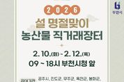 부천시는 설 명절을 앞두고 2월 10일부터 12일까지 시청 정문 앞에서 ‘2026년 설 명절맞이 농산물 직거래장터’를 연다. 이번 직거래장터에는 공주시, 무주군, 옥천군, 진도군, 봉화군 등 자매결연 도시를 포함해 서산시, 안동시, 부천 지역 전통시장(한신시장, 제일시장), 팔도향우회(강원·호남)가 함께한다. 각 지역 참가 단체는 직접 재배한 농수산물과 특산품을 준비해, 시민들이 설 차례상과 선물용으로 활용할 수 있도록 다양한 성수품을 선보일 예정이다. 직거래장터에서는 사과, 알밤, 버섯 등 신선 농산물과 미역, 다시마, 김, 멸치, 젓갈 등 수산 가공품, 된장, 고추장, 참기름, 한과 등 지역 특산품이 판매된다. 판매 품목은 품질이 우수한 우리 농산물로, 시중가보다 평균 10% 이상 저렴하게 제공된다. 이수미 부천시 도시농업과장은 “이번 직거래장터는 설 명절을 앞두고 시민들이 전국의 다양한 농특산물을 한자리에서 만날 수 있도록 마련한 자리”라며 “가격 부담은 줄이고 명절의 따뜻한 정취는 더할 수 있도록 준비한 만큼, 많은 시민이 함께 즐기길 바란다”고 말했다.