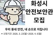 화성특례시는 지역 내 안전문화 확산과 생활 속 위험요소의 사전 발굴·제거를 위해 안전보안관 145명을 공개 모집한다고 23일 밝혔다. 모집 기간은 3월 23일부터 4월 6일까지며, 공고일 기준 주민등록상 화성시에 거주하는 시민이면 누구나 지원할 수 있다. 안전보안관의 주요 활동은 ▲안전신문고 앱을 활용한 7대 안전무시 관행 및 생활 속 안전위반 행위 신고 ▲지역행사 및 축제 안전점검 지원 ▲안전문화 캠페인 참여 등이다. 안전보안관은 위촉일로부터 2년간 활동하며, 제안사항이 수용될 경우 ‘1365 자원봉사포털’을 통해 봉사시간을 인정받는다. 참여를 희망하는 시민은 화성시청 홈페이지 ‘시정알림방’ 게시판에서 ‘안전보안관’을 검색해 신청서를 내려받아 작성 후 안전정책과 안전문화교육팀 전자우편으로 제출하면 된다. 김영준 안전정책과장은 “시민이 직접 참여하는 안전관리 체계는 지역 안전 수준을 높이는 중요한 기반”이라며 “일상 속 위험요소를 세심하게 살피고 개선해 나가는 활동을 통해 보다 촘촘한 안전환경을 조성해 나가겠다”고 말했다.